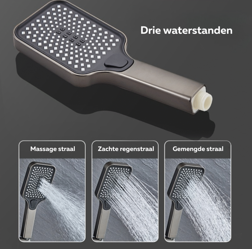 • Vier verschillende douchestanden – van ontspannende regenstraal tot krachtige straal, ideaal ook voor het vullen van een emmer of het snel schoonspoelen van je voeten