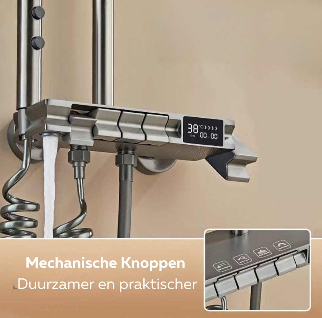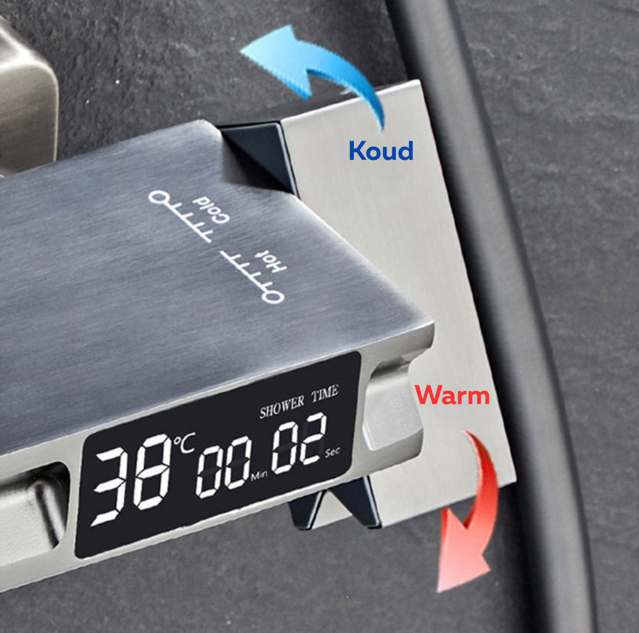 • Tijdfunctie – zie precies hoelang je al onder de douche staat, stimuleert milieubewust douchen en waterbesparing