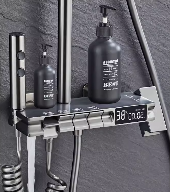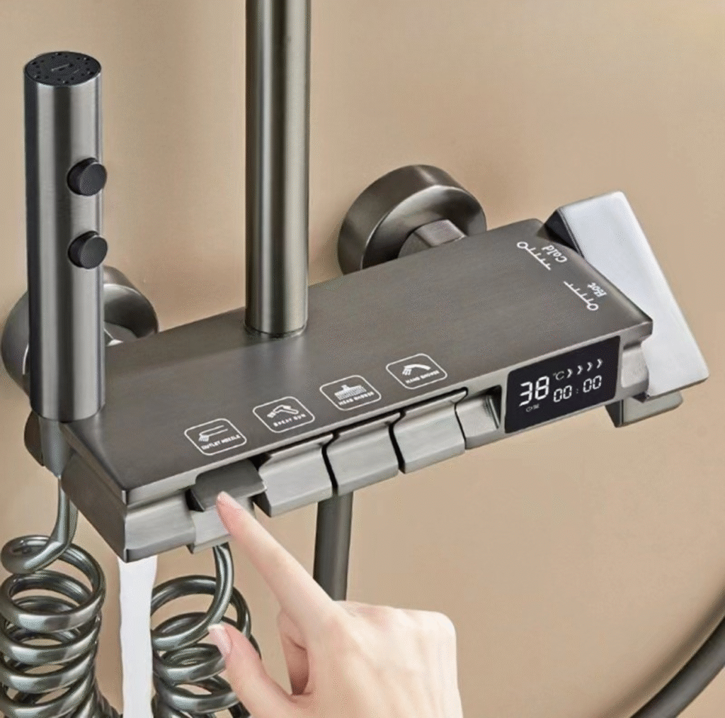 Deze innovatieve douchekraan is de kraan van de toekomst – waar design, duurzaamheid en technologie samenkomen. Het strakke, minimalistische ontwerp past perfect in elke moderne badkamer en maakt een statement zonder te overdrijven. Wat deze kraan écht uniek maakt, is de milieubewuste aanpak: dankzij een ingebouwde digitale temperatuur- en tijdsweergave word je je bewuster van je watergebruik.